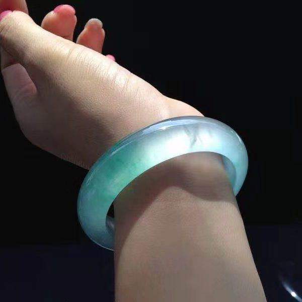 下面这三个手镯,都是水润清透且有底色,都好看,但是最下面的相对来说内部棉理结构多了一点,中间的跟上面的一块料下来,都是冰春彩,不过中间的光泽程度不及上面的,所以价格从上到下就是两万左右、一万左右、几千。